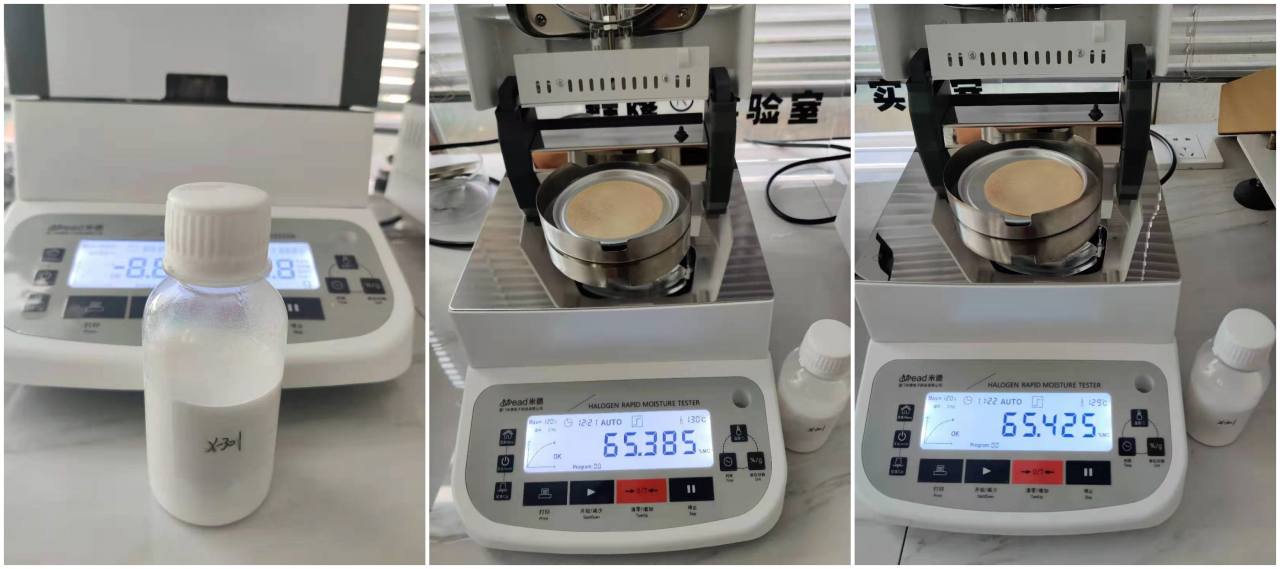 測(cè)試儀器:米德QL-720D(稱重精度0.001g,水分解析0.001%)