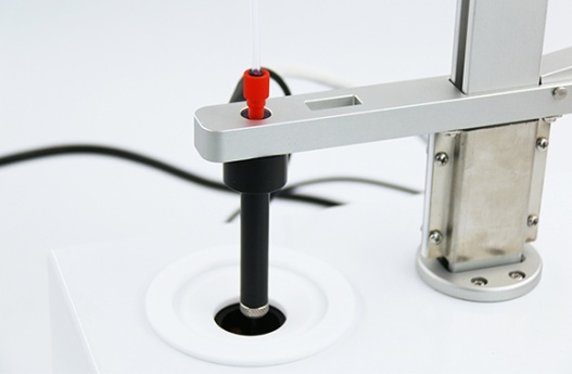 3.5、打開儀器電源,顯示開機界面,按測定鍵進入測量界面,調(diào)節(jié)+ -號鍵增減攪拌速度,直至攪拌珠勻速轉(zhuǎn)動,轉(zhuǎn)動時保證杯內(nèi)液體不要濺到液位上方的杯內(nèi)壁為宜。