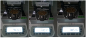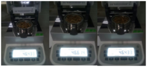 4.復(fù)位儀器,待儀器冷卻至40℃以下后,再取6.053克的氟化鈣礦粉(A3樣品)均勻鋪在樣品盤上,重復(fù)上述測試步驟;測試結(jié)束后得出第二組數(shù)據(jù),顯示樣品的水分含量為10.260%;